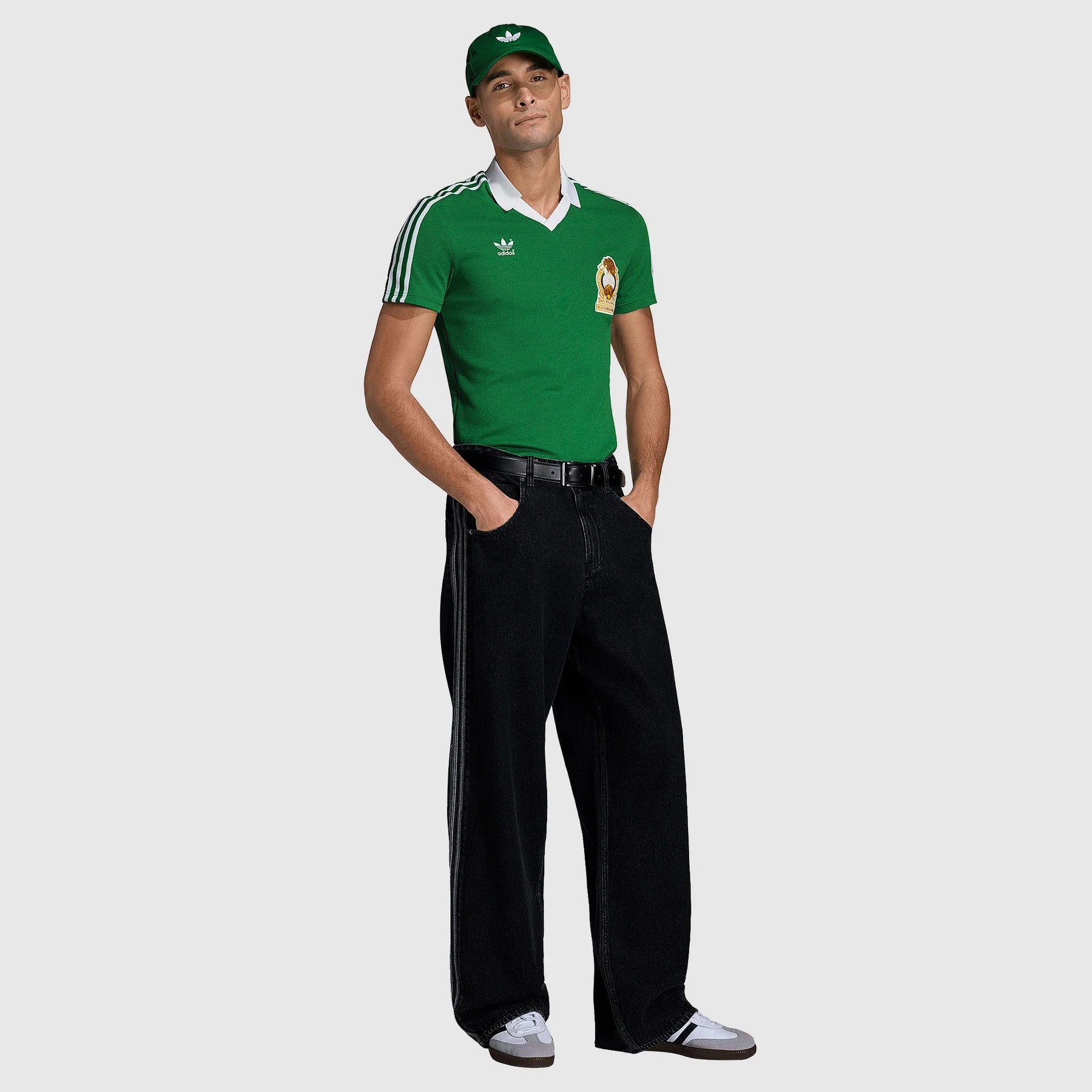 Part of the adidas Originals Mexico throwback range, the 1986 home shirt is a recreation of the kits worn by the Mexico squad at the 1986 FIFA World Cup, commemorating their last home World Cup as they look forward to playing host again in 2026. A bold all-green base is elevated with a classic fold-down collar and the timeless adidas Trefoil logo to create a distinctly 80s look that evokes images of national icon Hugo Sanchez, thrilling playmaker Tomas Boy and inspirational defender Fernando Quirarte. The Federacion Mexicana de Futbol (FMF) crest emblazoned over the heart displays your patriotism for all to see. The ultra-smooth cotton-polyester weave keeps you cool and comfortable in any situation, whether you’re having a casual kickabout with mates, hitting the streets, travelling the length and breadth of the country for the 2026 World Cup, or living every one of the 90 minutes with the team in the stands. Made in part with recycled polyester, this shirt cuts down on the production of plastic waste and helps you do your bit for the environment.