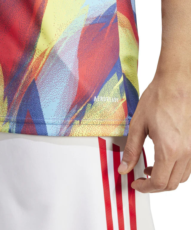 London comes to life when there's a carnival on the horizon. Bring festival vibes to your Arsenal fandom by pulling on this adidas football jersey. The shirt players wear before games, it stands out with vibrant colours and carnival costume-inspired graphics. AEROREADY controls moisture to keep you focused while you train, play or back your club.